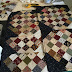 This block didn't use circles but i'm showing the way i do nice round circles with no bumps. As i use a cardboard template i cut out the required amount needed as the spray starch ruins the templates. Finished circle beside the template. You definately need the tweezers to remove the cardboard. Pin the cardboard circle to the applique fabric & cut around leaving a generous 1/8th" seam allowance. Using a matching thread gather up the seam allowance & tie off. Paint with the liquid starch or spray with starch & iron. Remove the template & you have a perfect circle. For really tiny circles some people have been using those sticky circles that are used on loose leaf A4 sheets to stop the holes tearing when inserted into a ring binder folder. They can be left in the applique fabric & cause no problems. I've not tried this yet but know several people who do & they assure me they are safe to use.